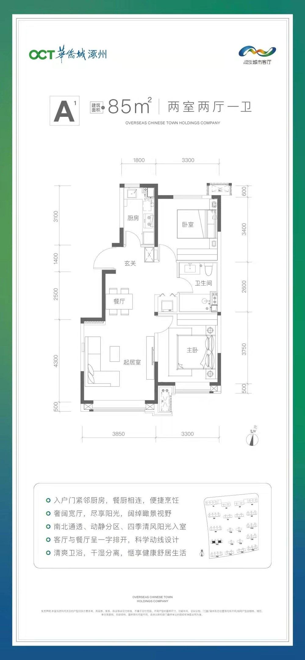 A1戶型 2室2廳1衛(wèi) 85平