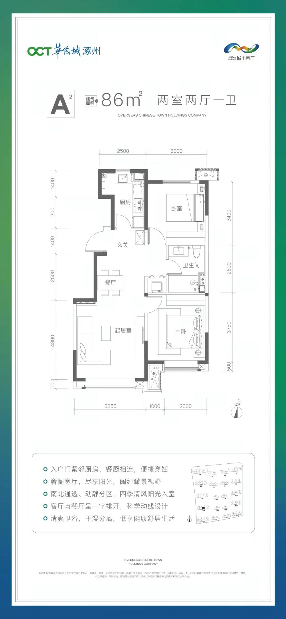 A2戶型 2室2廳1衛(wèi) 86平