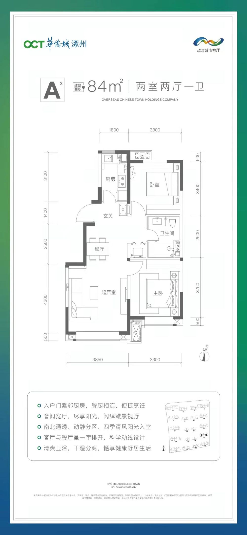 A3戶型 2室2廳1衛(wèi) 84平