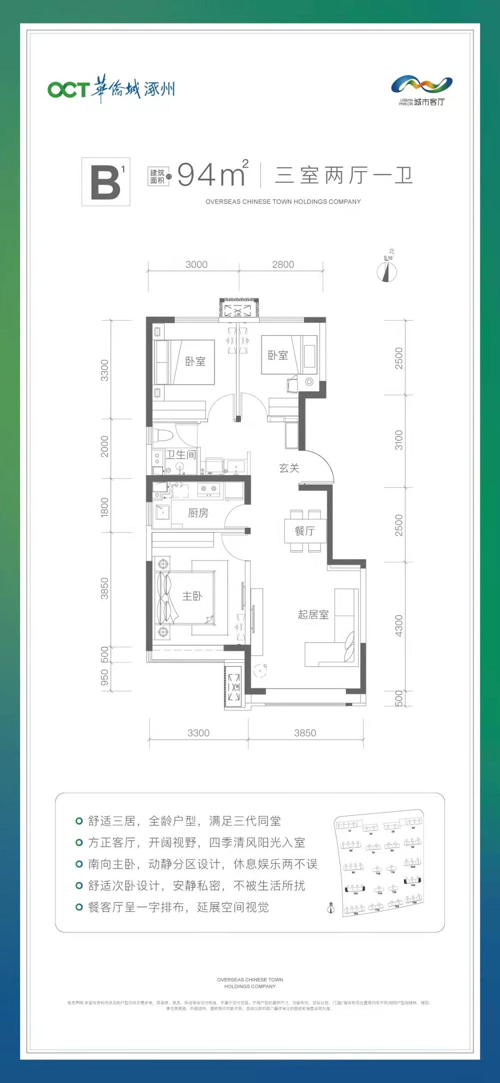 B1戶型 3室2廳1衛(wèi) 94平