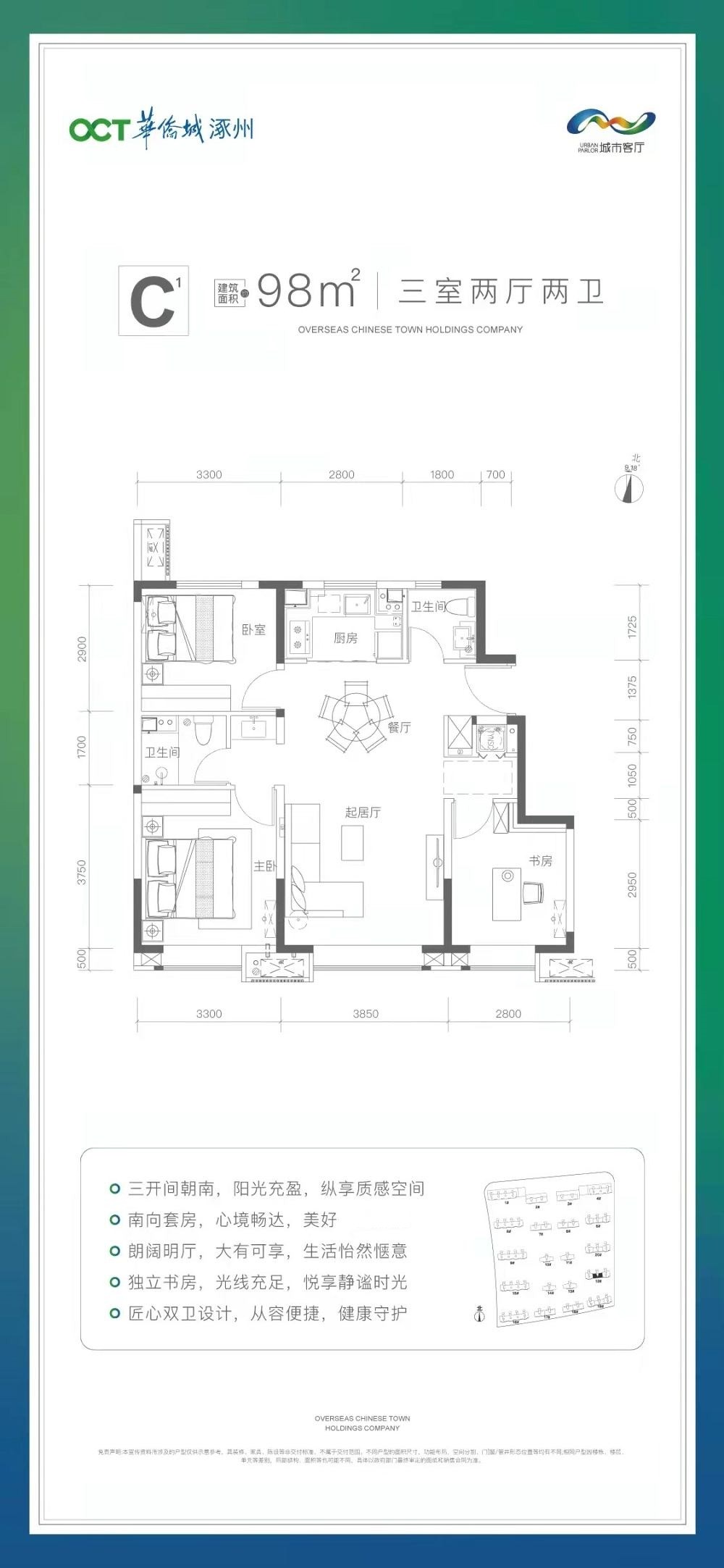 C1戶型 3室2廳2衛(wèi) 98平